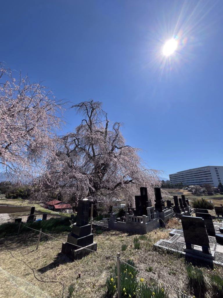 下菅沢の祖霊桜は、長野県茅野市豊平にある樹齢400年以上のシダレザクラです。茅野市内では最大の巨木で、天然記念物に指定されています。